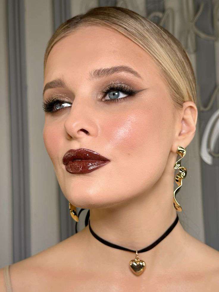 Сдержанный, глубокий цвет для тех, кто ценит классику и утонченность. Визажист: «Темно-коричневый придает образу роскоши и зрелости, он хорош в сочетании с нюдовыми тенями и аккуратной скульптурой лица. Такой тон особенно популярен у ценителей ретро-стиля и тех, кто предпочитает монохромные образы».