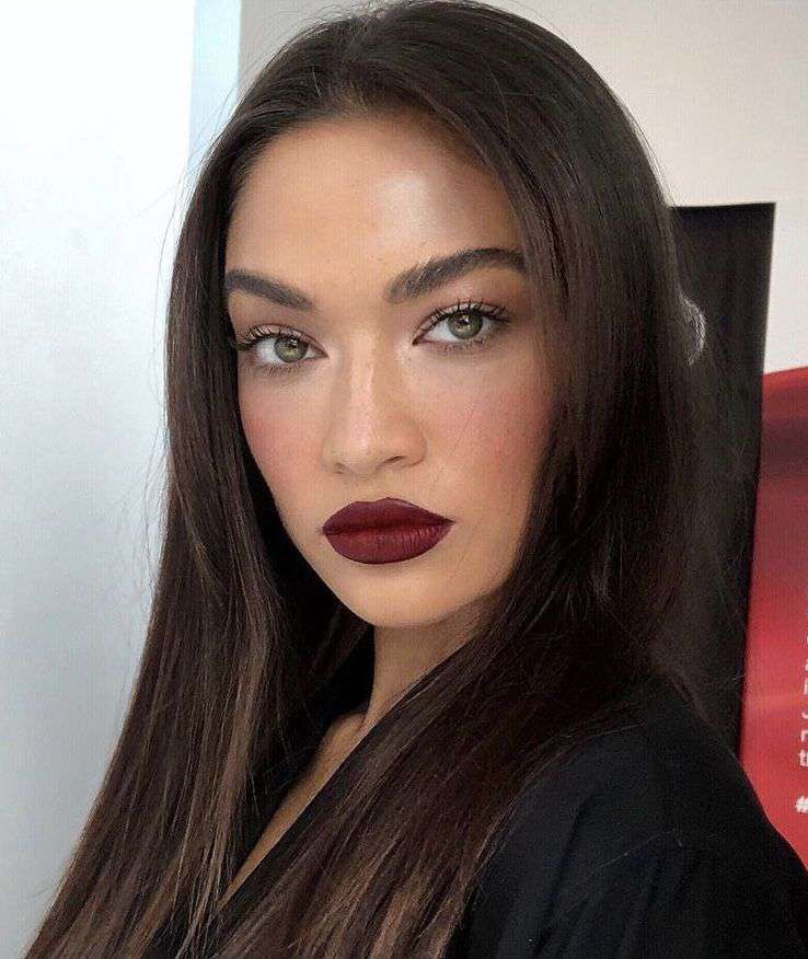 Этот цвет ассоциируется с бархатными вечерами и согревающим вином, он добавляет образу драматичности и элегантности. «Бордовый прекрасно контрастирует с бледной кожей и подчеркивает выразительность губ, делая макияж более насыщенным без лишней вычурности. Для дневного образа достаточно легкого покрытия, а для вечера можно нанести помаду плотным слоем и завершить матовым финишем», — советует визажист.