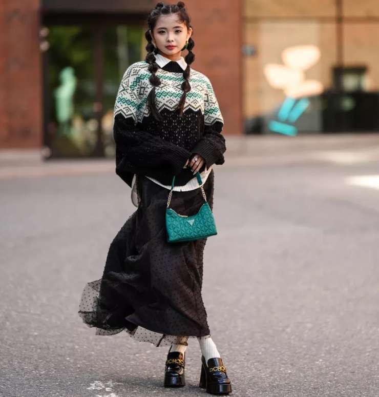 Когда прохладно, юбка из фатина работает так же хорошо, как и в жару, особенно если надеть ее с вязаным свитером поверх рубашки с воротником. Наденьте мокасины и теплые носки. А осенью можно набросить сверху длинное пальто или куртку-бомбер. Или косуху.