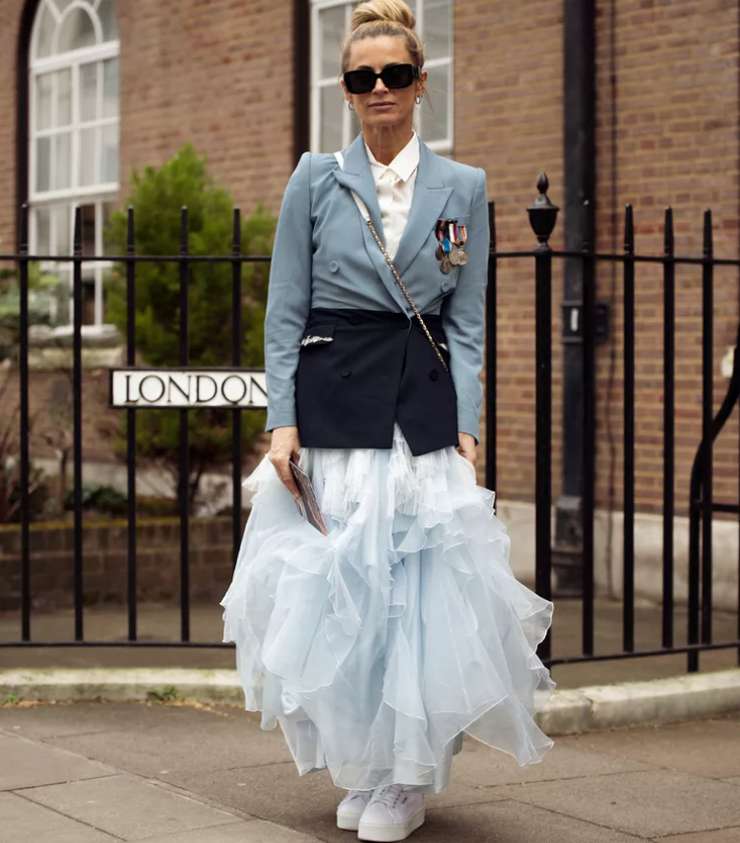 Стиль preppy всегда шикарен, а блейзер в стиле школьницы или классной дамы и юбка из тюля в пол — удивительно сочетание. Придерживаясь простой цветовой палитры, например, белого и голубого, вы сможете создать целостный образ, особенно в паре с классическими белыми кроссовками или мокасинами.