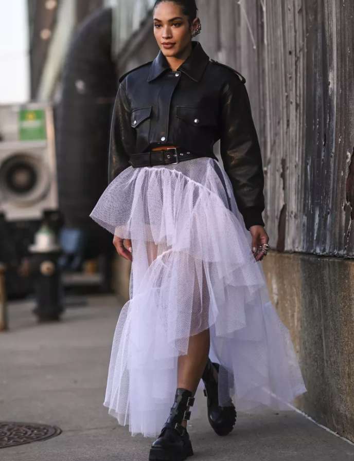 Юбки из тюля имеют репутацию милых и похожих на принцесс, но пара толстых ботинок и кожаная куртка помогут сделать их более строгими и придать всему образу хулиганскую нотку.