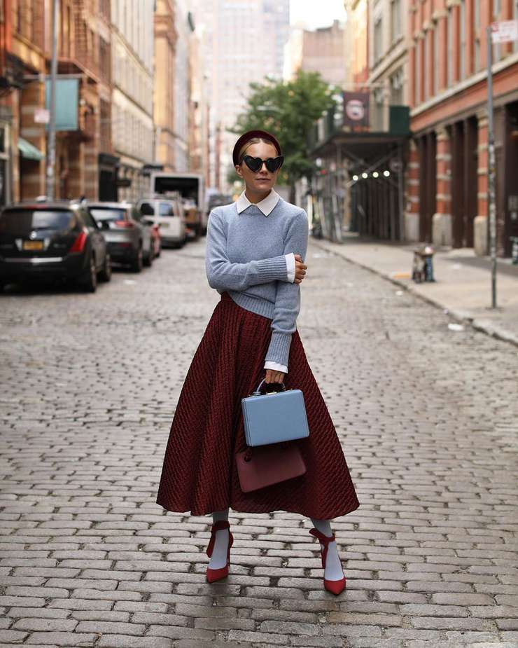 Пастельные оттенки, безусловно, освежают. Но не надо бояться и приглушенных темных. Например, бордовый — самый модный цвет сезона. «Этот цвет подчеркнет, что женщина следит за модой и умело использует тренды в своем гардеробе. Бордовый не портит образ, а придает ему статуса. А если поверх надеть черное пальто длины макси, то образ будет выглядеть супер-трендовым», — рекомендует Юлия.