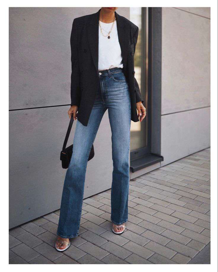 «В вашем гардеробе обязательно должны быть прямые джинсы или джинсы-палаццо. Сейчас в тренде палаццо, но прямые джинсы — это классика, которая всегда актуальна и отлично смотрится с косухой и пальто. С джинсами можно сочетать практически все: свитера, водолазки, рубашки, оверсайзные футболки, топы, кроп-топы. Это самая базовая модель», — подсказывает Юлия.