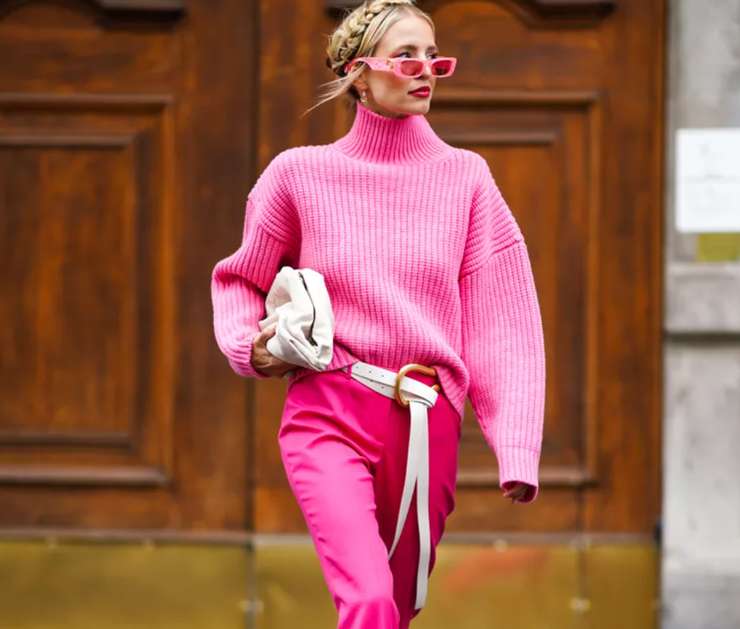 Если носить яркие цвета с ног до головы, то монохроматический образ будет выглядеть потрясающе — особенно в пасмурные месяцы. Сочетайте заметную водолазку с элегантными строгими брюками аналогичного оттенка. А если вы не любите смелые цвета, этот трюк подойдет и для нейтральных — роскошно будет смотреться комплект в черном, темно-синем или бежевом варианте.