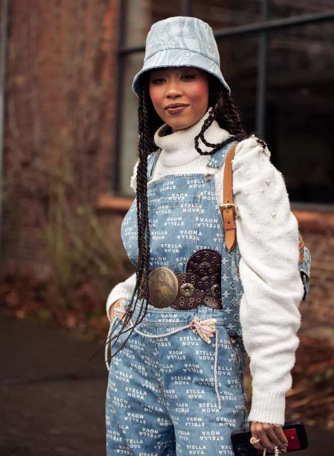 Водолазки отлично подходят для многослойности, но свитер с высоким горлом выглядит особенно свежо, если надеть его под комбинезон. Такой фасон — забавный и веселый кэжуал-вариант, если у вас есть один или два ярких ремня, которые вы тоже хотите продемонстрировать.