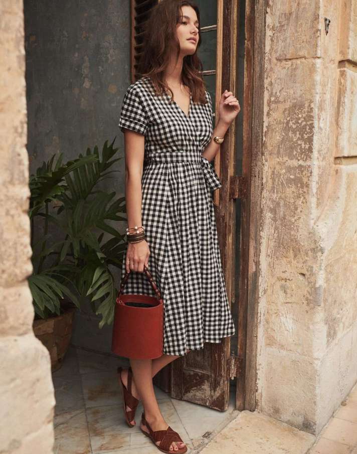 Юбки с высокой посадкой — удлиняют ноги и создают гармоничный силуэт. а платья с запахом — подчеркивают женственные линии, не акцентируя плечи.