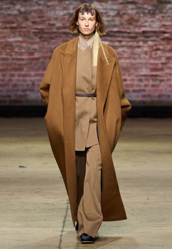 Мягкий крой без жесткой застежки, плавный лацкан, широкий пояс, длина от миди до макси. Такой силуэт создает женственную линию и работает как универсальная верхняя вещь на каждый день. «Завязывайте пояс не туго, чтобы сохранить объем верха и подчеркнуть талию. Днем сочетайте с прямыми джинсами, кашемировой водолазкой и лоферами. На вечер смените низ на платье-комбинацию миди и туфли с закрытым мысом. Ткани лучше выбирать с ворсом или легкой фактурой — альпака, мохер, мягкая шерсть. Цвета держите в спокойной гамме: кофейный, верблюжий, графит», — объясняет эксперт.