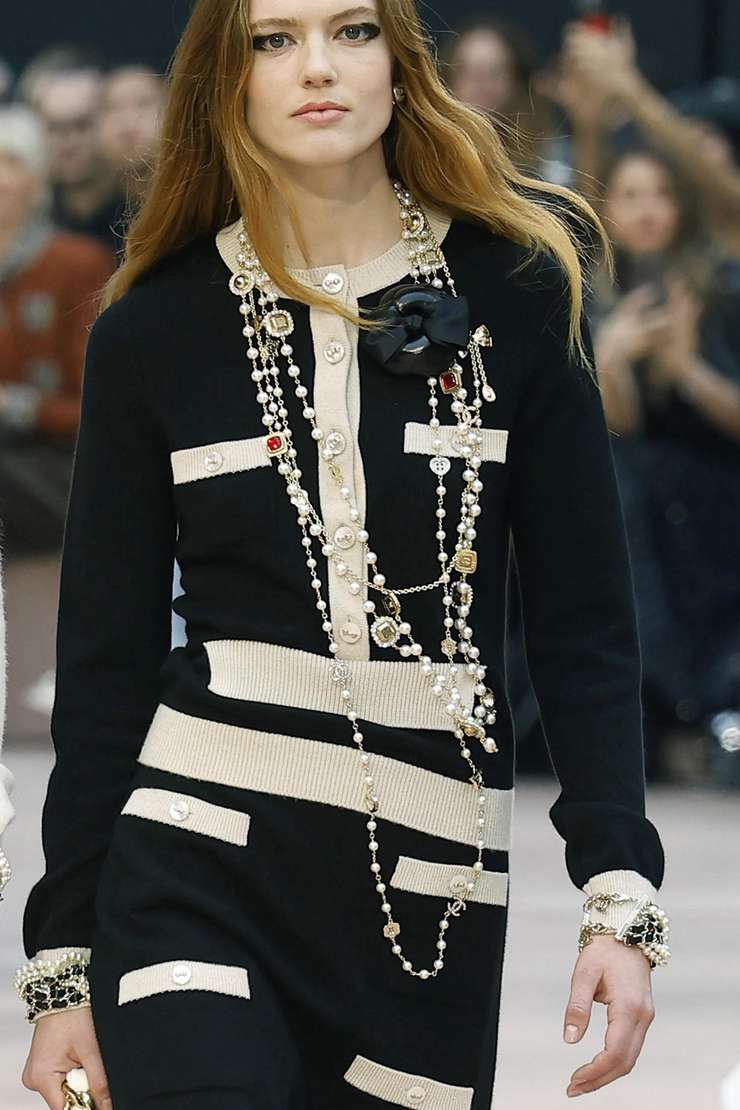 Модные дома, от Chanel до Simone Rocha, демонстрируют, что жемчуг может быть даже бунтарским. Например, в коллекции Chanel RTW Autumn/Winter 2025−26 доминируют массивные жемчужные украшения, а известный своим авангардным подходом бренд Vaquera представили колье из огромных жемчужин практически до пола.