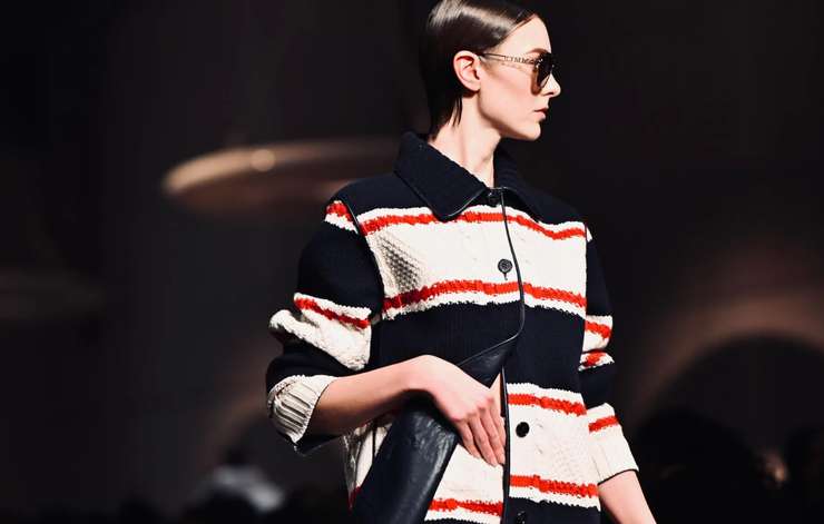 Полоса остается базовой графикой сезона, но меняется масштаб: широкие, смещенные полоски тельняшки, ломаные линии разной толщины, диагональ поверх вертикали. «В трикотаже это свитеры с крупной двух-трехцветной полосой, в костюмах — редкая мелкая „иголочка“, которая создает эффект мягкой вертикали. Полоска вообще хороша для силуэта в целом: вытягивает рост, собирает объем и спасает любой не слишком сложный или продуманный образ», — говорит стилист.