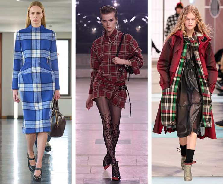 Тут, конечно, тартан, «принц Уэльский», гленчек — клетка переживает очередной пик. «В моде глубокие благородные тона — графит, хвоя, бордо, темный индиго — и крупный раппорт, который читается даже в движении. Пиджаки и пальто держат плечо чуть шире, юбки идут либо узкой миди-трубой, либо складками, брюки — прямые в пол. Такой подход делает любой образ стильным, даже если под пальто — свитшот и кроссовки», — уверяет эксперт.