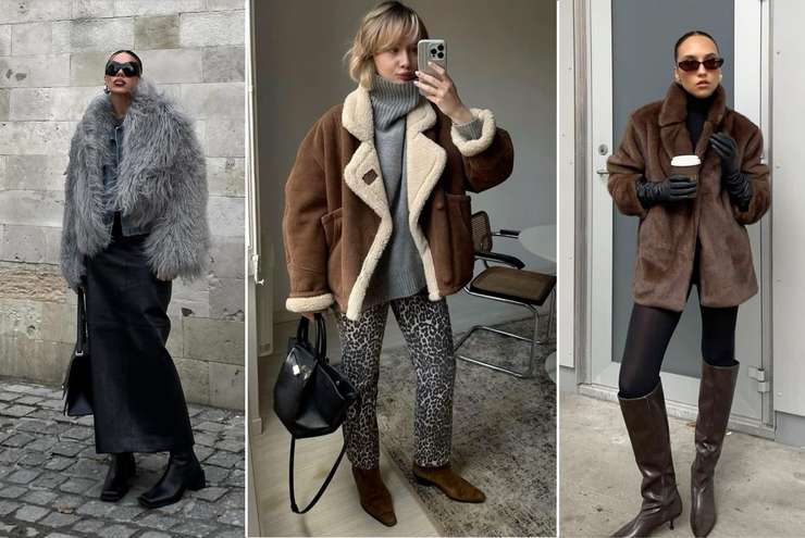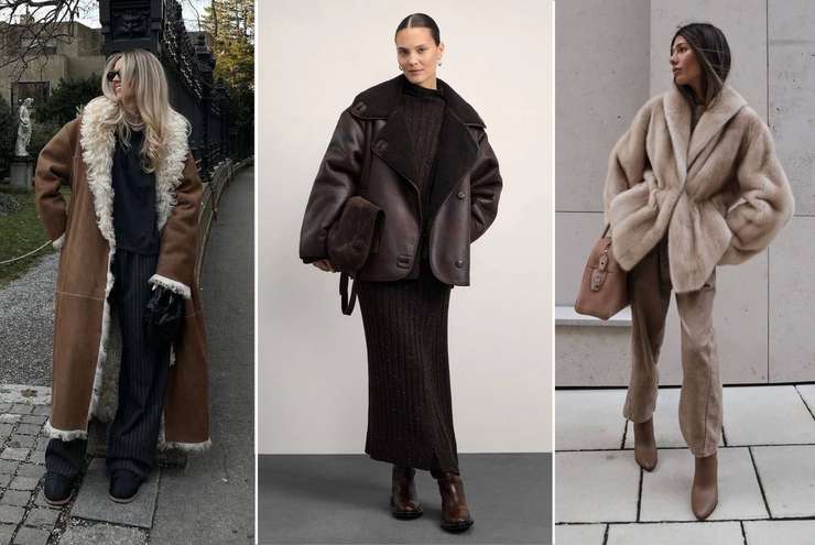 Пуховик давно вышел за рамки спорта: длинные модели работают как пальто, укороченные дружат с платьями-свитерами и прямыми брюками. Шуба умеет быть и праздничной, и повседневной: длина до колена — для выходов, укороченная — для города. Дубленка — про характер и мягкую силу: немного ретро, чуть «country», но в паре с гладкими тканями получается спокойная городская элегантность.