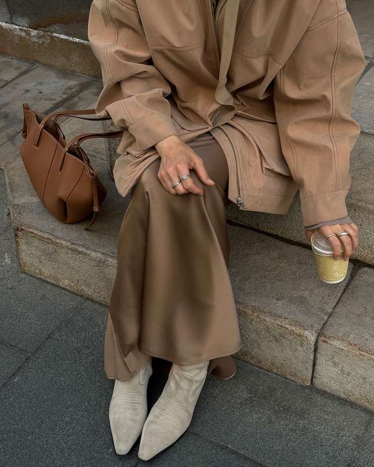 Дымчатый коричневый под кодовым названием Mocha Mousse, а в народе прозванный «шоколадный трюфель» стал цветом года по версии Pantone. Это не просто коричневый — это дорогой, сложный, многогранный цвет с красновато-бордовым подтоном, который выглядит аристократично в любом освещении. Самое приятное: он идет абсолютно всем. Главное — правильно подобрать компанию.